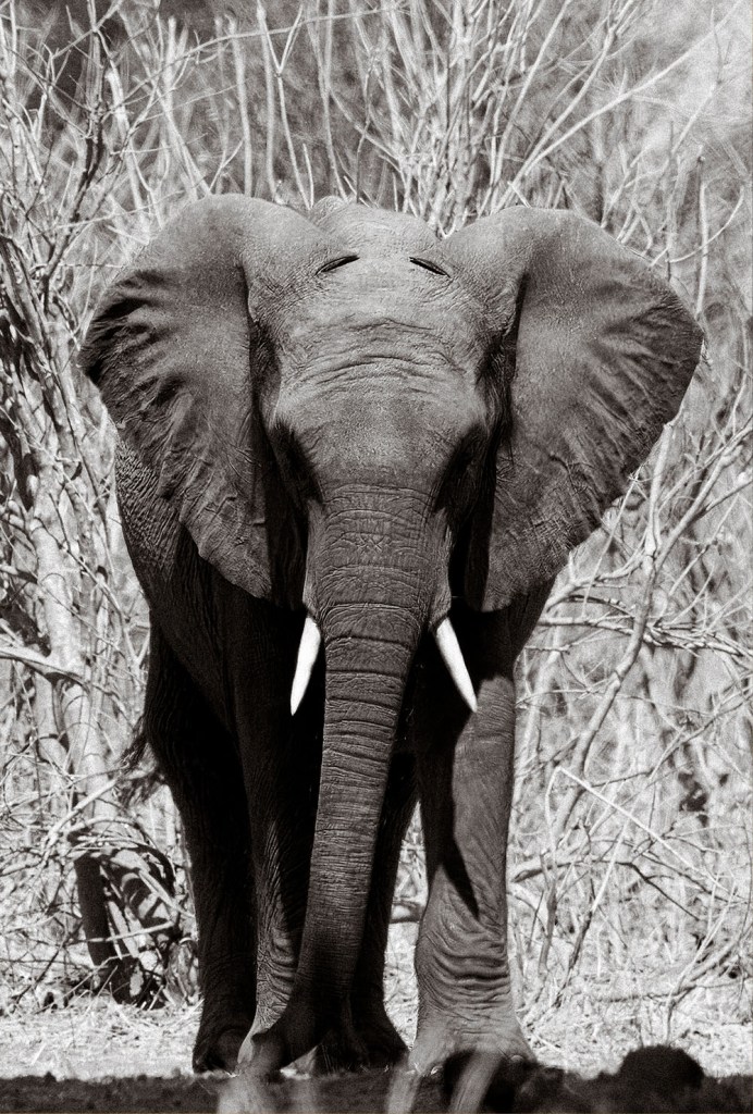Black & White photograph of an African Elephant, taken at Chobe National Park, Botswana.