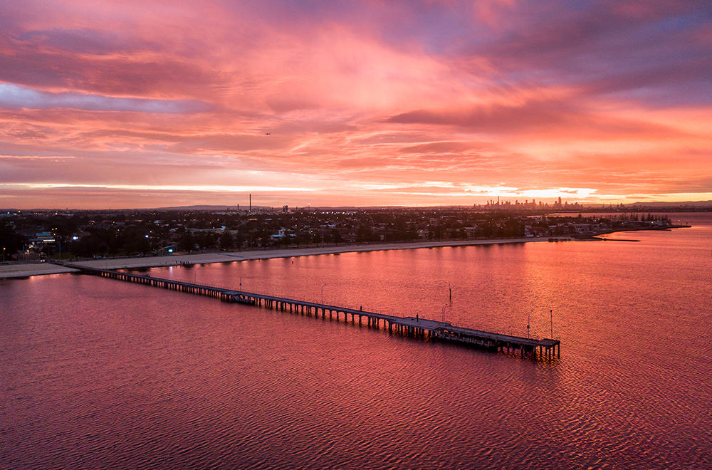 I captured this stunning aerial sunset shot over Altona Beach in 2018.