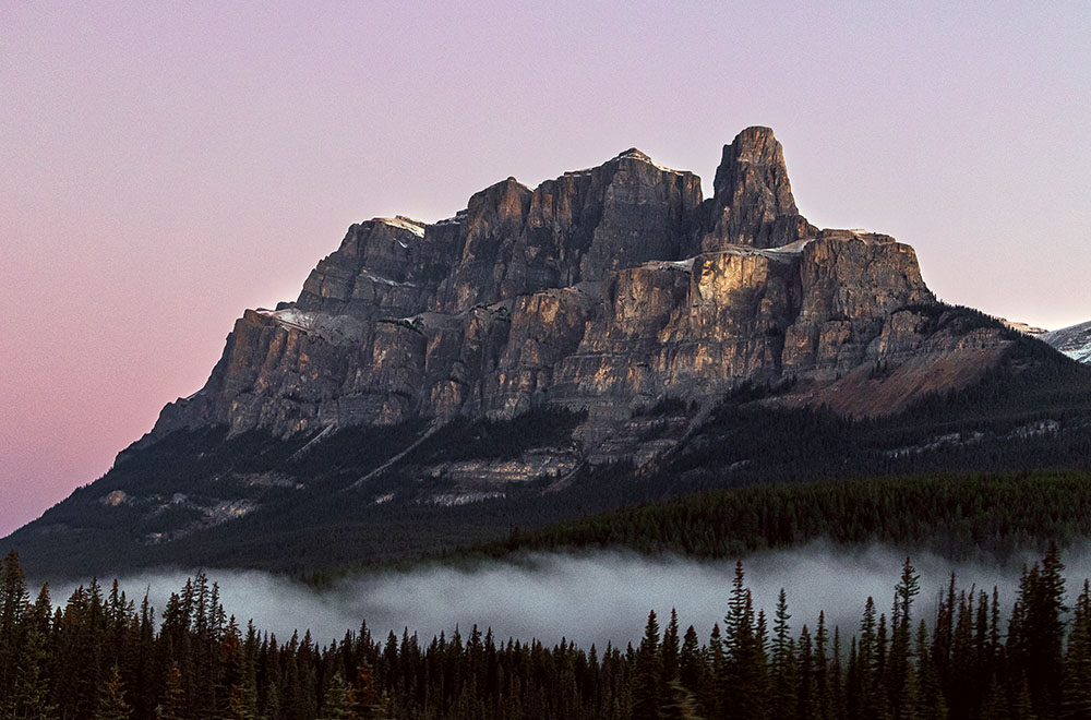 Photograph of mountains located in Banff National Park, Alberta, just before sunrise.