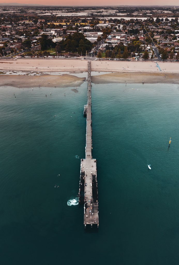Aerial shot of Altona locals spending the last few days of Summer jumping off Altona Pier.