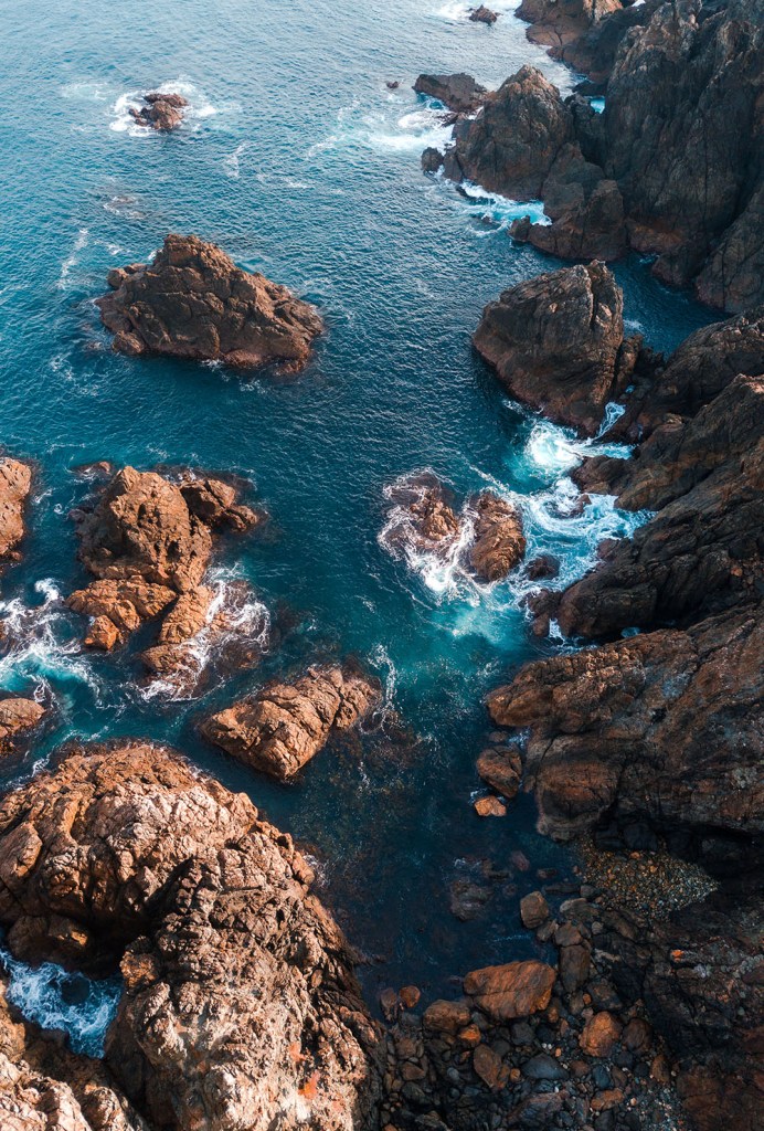 An aerial photograph of a rocky shore in King Island, Tasmania on an Autumn afternoon.