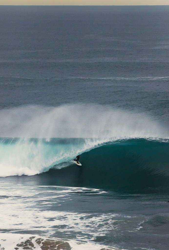 A surfer conquers a hollow barrel at Thirteenth Beach, Victoria.